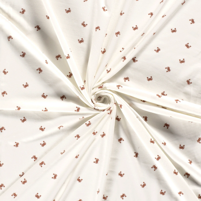 Verschönern Sie Ihre Nähprojekte mit unserem Baumwolljersey in Weiß mit niedlichen Krabben-Motiven. Der weiche Stoff sorgt für angenehmen Tragekomfort, während das originelle Design für einen fröhlichen und maritimen Look sorgt. Perfekt für Kleidung, Accessoires oder Dekorationen im maritimen Stil. Holen Sie sich jetzt den Sommer nach Hause!
