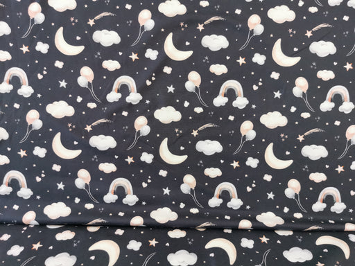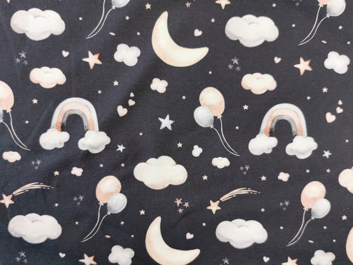 Ursprünglicher Preis CHF 0.00/m - Ursprünglicher Preis CHF 0.00/mUrsprünglicher Preis CHF 0.00/mCHF 19.00/mCHF 1.90 - CHF 1.90Aktueller Preis CHF 19.00/m| /2.5 mErleben Sie einen Regenbogen Nachthimmel mit unserem Baumwolljersey in maritimem Blau. Sanft schimmernde Monde funkeln auf dem Stoff und erwecken i...