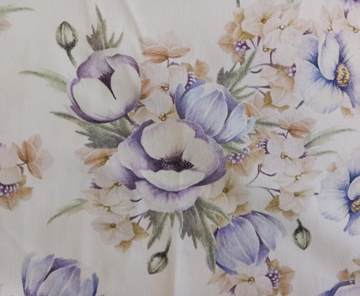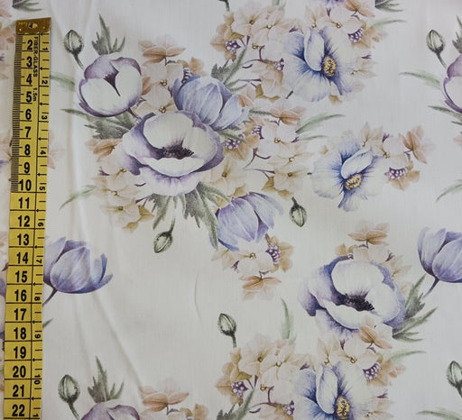 Baumwollpopeline mit Blumen lila