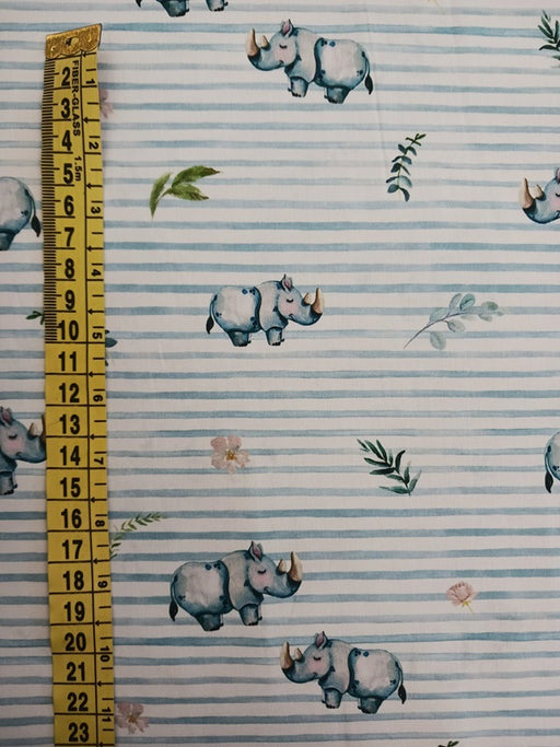 Baumwollpopeline gestreift weiss blau Nashorn