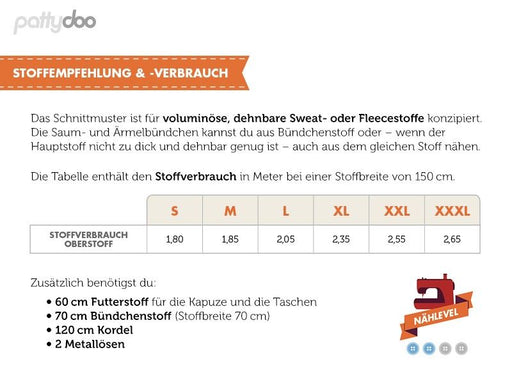 Ursprünglicher Preis CHF 13.90 - Ursprünglicher Preis CHF 13.90Ursprünglicher PreisCHF 13.90CHF 13.90 - CHF 13.90Aktueller Preis CHF 13.90| /2 auf LagerDas pattydoo Schnittmuster „Tony“ für die Größen S bis XXXL kannst du aus flauschigen Sweat- oder Fleecestoffen zu einem kuscheligen Kapuzenpullove...