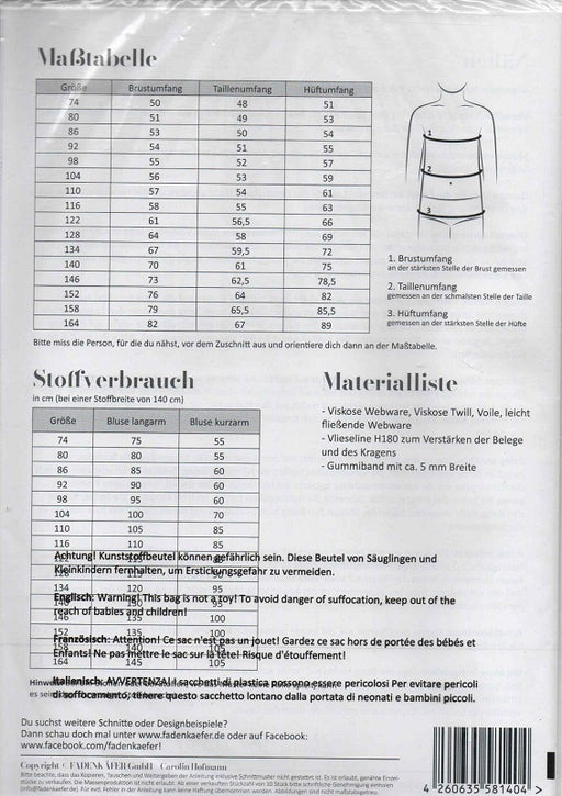 Kinder Bluse Rosalie Gr. 74-164 von Fadenkäfer