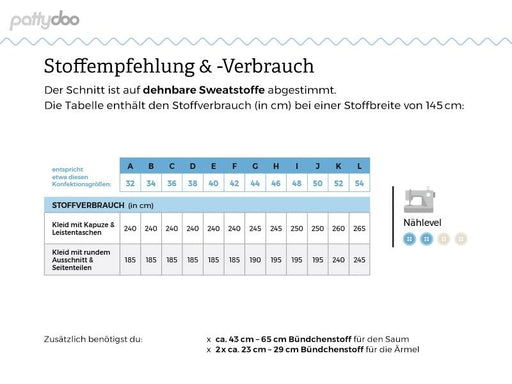 Sweatkleid Ronja, Schnittmuster Gr. 32 - 54 by pattydoo