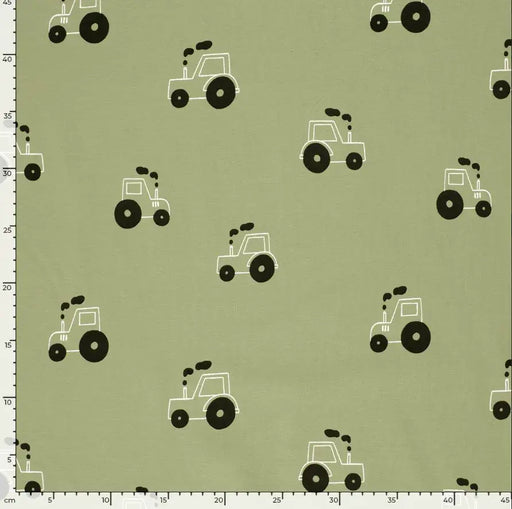 • Baumwolljersey Stoff Scherenschnitt Digitaldruck oliv