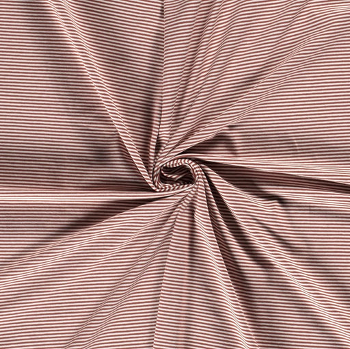 Baumwolljersey gestreift hellgrau meliert - dunkelrot