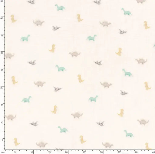 Musselin Stoff digital bedruckt Dinosaurier weiss