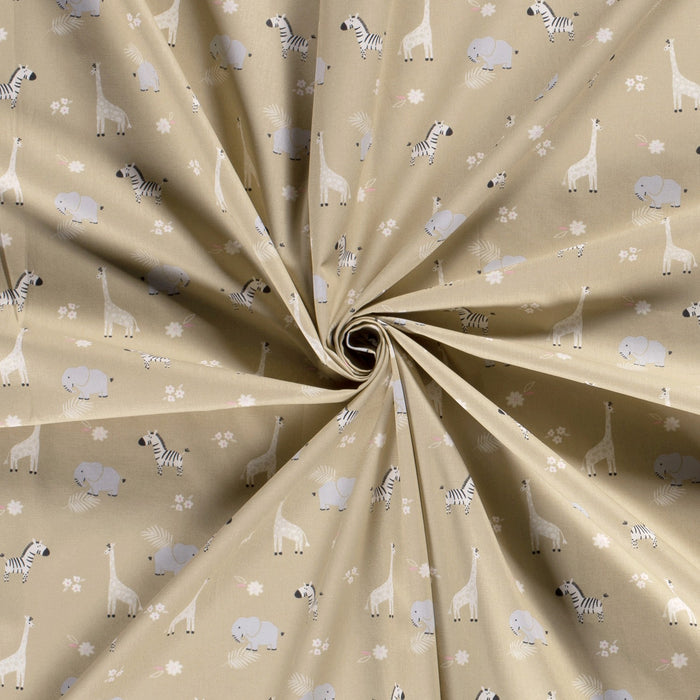 Entdecken Sie die Natur mit unserem Baumwollstoff Tierwelt beige! Mit seinem wunderschön gestalteten Tiermuster in neutralen Farben ist dieser Stoff perfekt geeignet für alle Ihre kreativen Nähprojekte. Hergestellt aus hochwertiger Baumwolle, ist er weich und anschmiegsam - ideal zum Kreieren von bequemer und langlebiger Kleidung oder Accessoires. Bringen Sie die Welt der Tiere in Ihr Zuhause!
