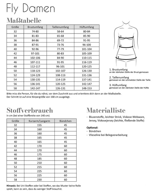 Ursprünglicher Preis CHF 15.90 - Ursprünglicher Preis CHF 15.90Ursprünglicher PreisCHF 15.90CHF 15.90 - CHF 15.90Aktueller Preis CHF 15.90| /3 auf LagerFly Damen Größe 32-58 Fly ist ein schnell genähtes Shirt mit überschnittenen Ärmeln, das du sowohl mit langen als auch kurzen Ärmeln nähen kannst. ...