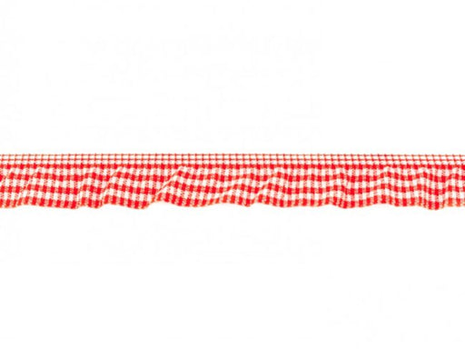 Elastisches Rüschenband Vichy 2 cm rot - weiss