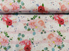 Verschönern Sie Ihren Kleiderschrank mit unserem Baumwolljersey Rosen weiss! Der weiche Stoff mit zarten rosa Streifen ist ideal für Kleidung und Accessoires. Lassen Sie sich von den Rosenmotiven inspirieren und verleihen Sie Ihrem Look eine romantische Note. Perfekt für jeden Anlass!