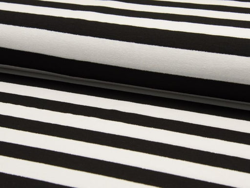 Viscosejersey Blockstreifen schwarz - weiss mit feinem Lurexstreifen