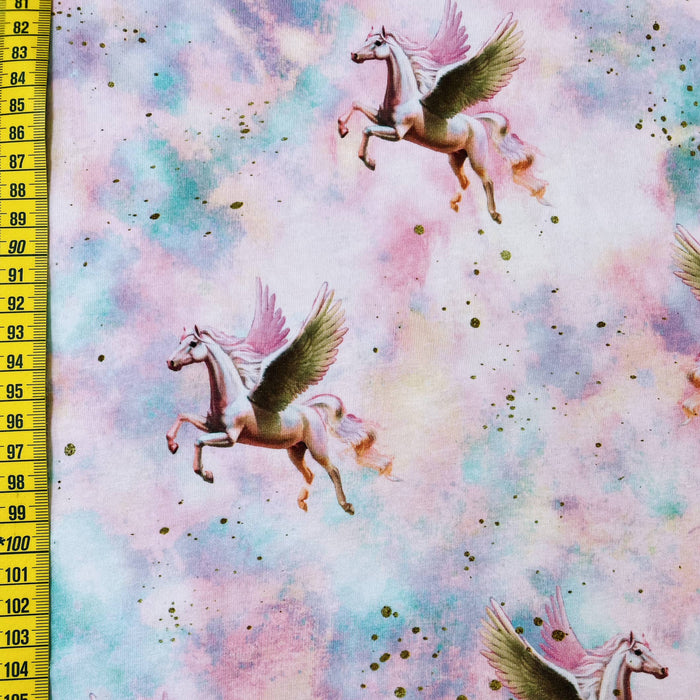 Sehr hochwertiger Baumwolljersey bedruckt mit geflügelten Pferden
