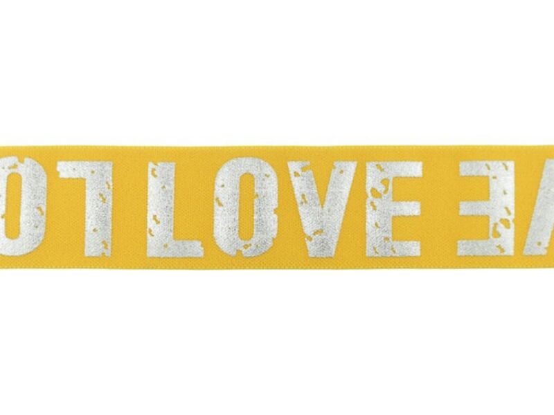Trendiges Gummiband "LOVE" zur vielseitigen Verwendung für Kleidung, Taschen, Säume, Unterwäsche, Basteln etc., top aktuell zum Aufpeppen unifarbener Kleidung mit seitlichem Streifen auf Ärmeln oder Hosenbeinen.