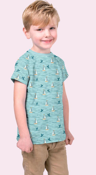 Sehr hochwertiger Baumwolljersey bedruckt Segelboote