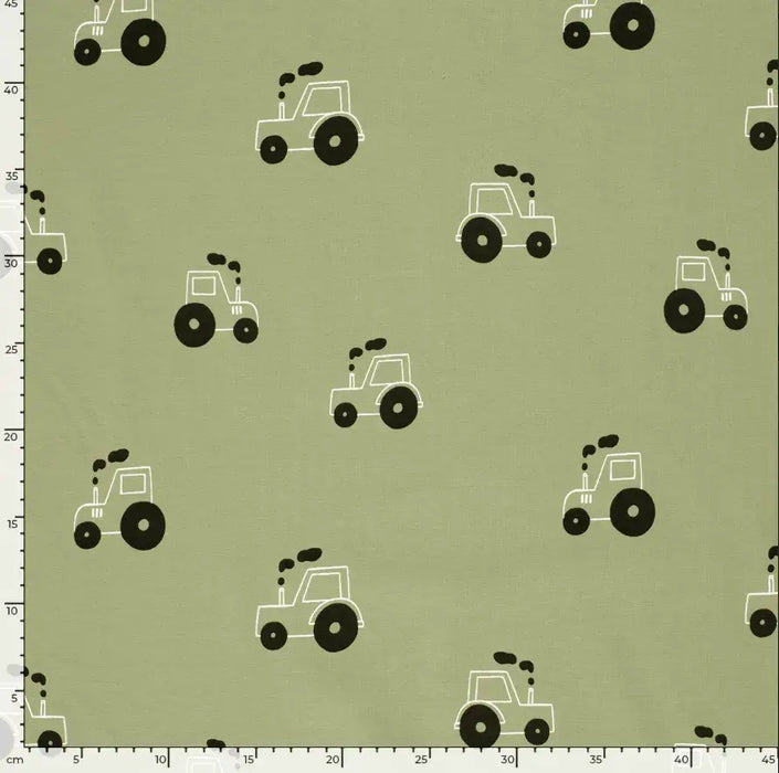 Begeistern Sie sich mit unserem Baumwolle Jersey Stoff bedruckt mit fröhlichen grünen Traktoren! Dieser hochwertige Stoff aus weicher Baumwolle bietet nicht nur eine schöne Optik, sondern auch einen angenehmen Tragekomfort. Holen Sie sich jetzt Ihren individuellen Look und zeigen Sie Ihre Leidenschaft für Traktoren!
