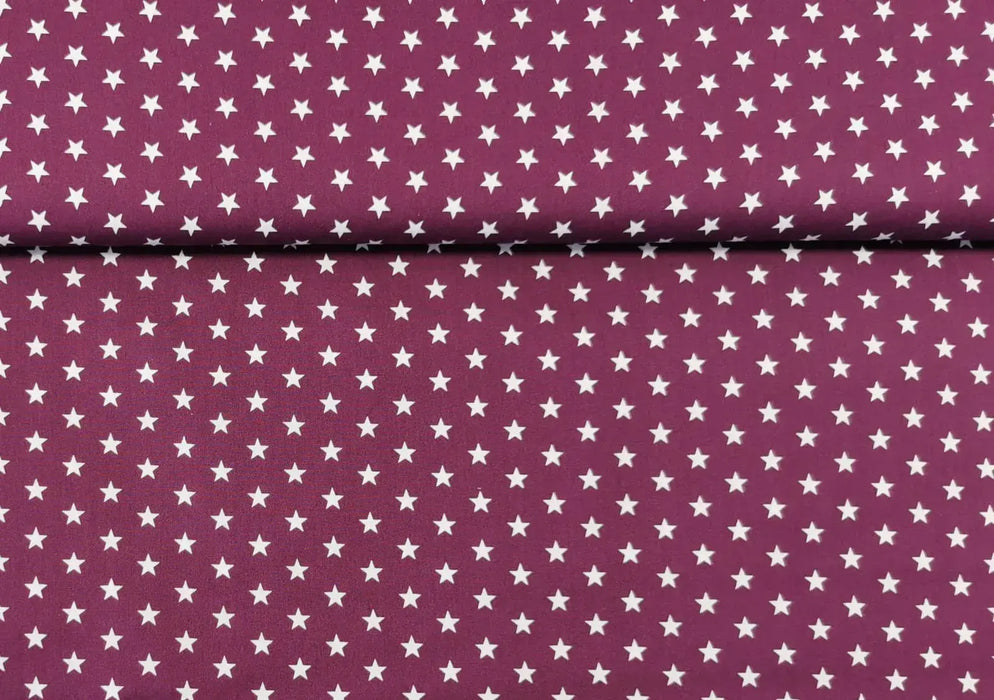 Baumwollstoff pflaume Sterne weiss