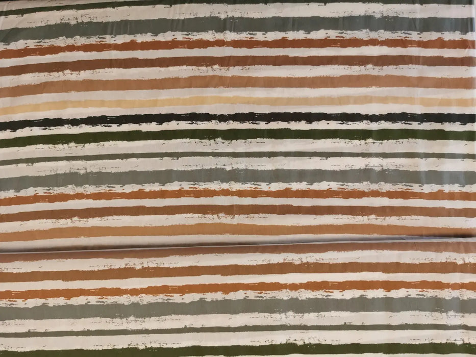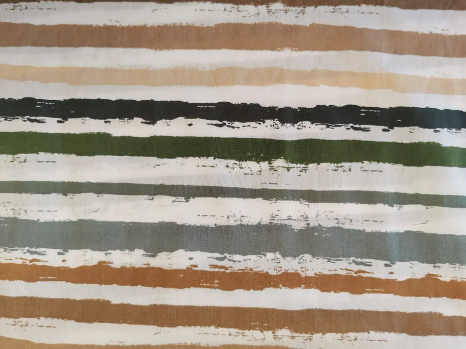 Dieser hochwertige Baumwollstoff in Streifen-Design ist perfekt geeignet für alle Arten von kreativen Projekten. Mit den harmonischen Farbübergängen von Grün bis Braun verleiht er jedem Nähprojekt einen natürlichen und warmen Touch. Lassen Sie Ihrer Kreativität freien Lauf und bringen Sie Ihre Ideen zum Leben!