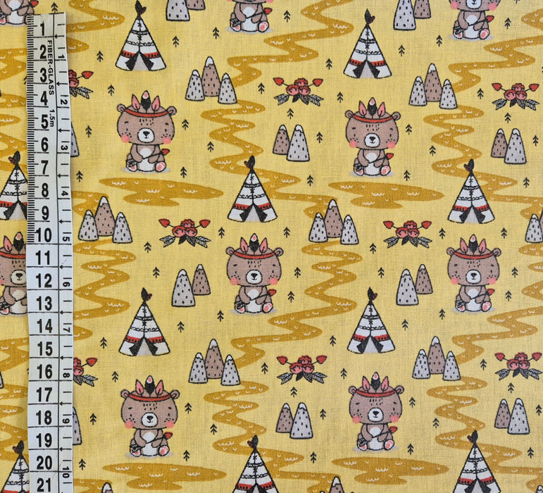 Beschichtete Baumwolle Indianerbär gelb